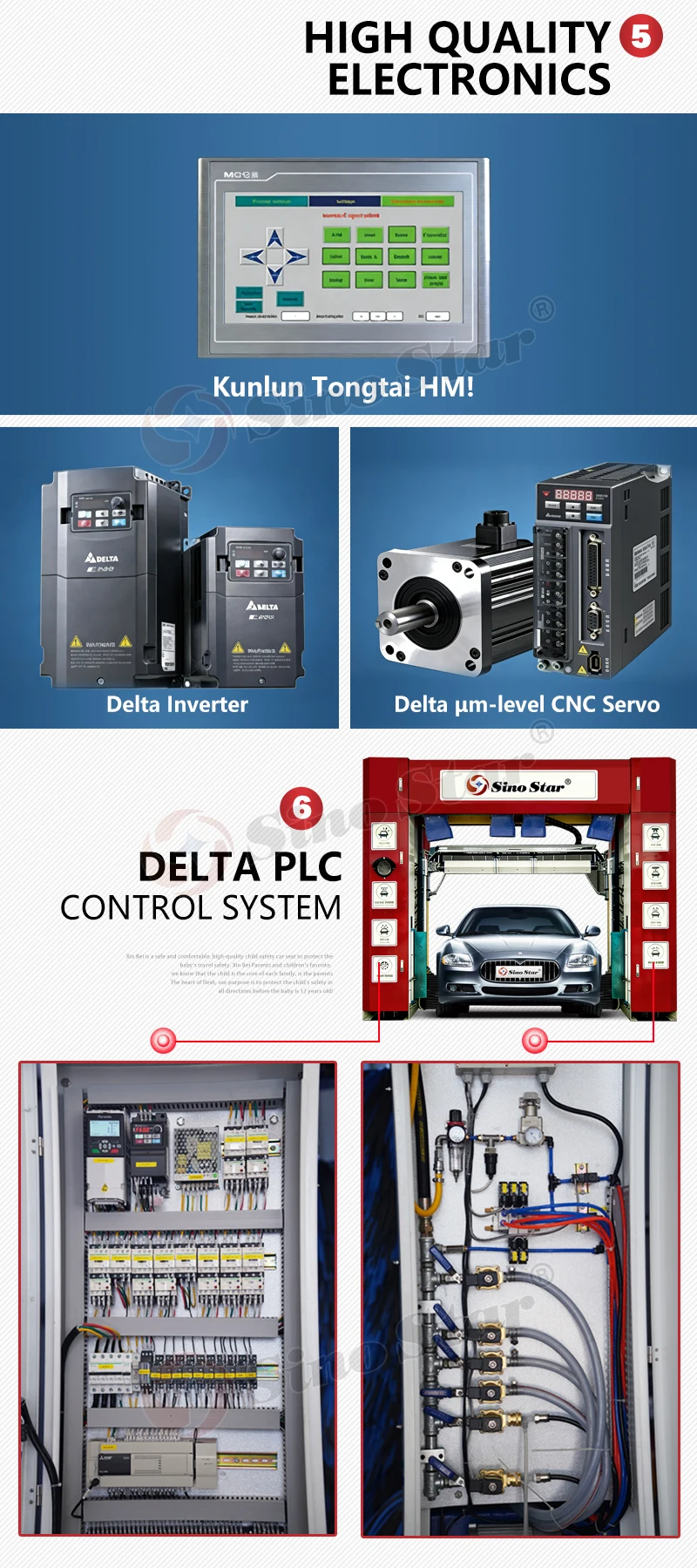 Sino Star automatic car wash machines require 3 phase industry power supply, in China the standard is 380V/50Hz, if customer